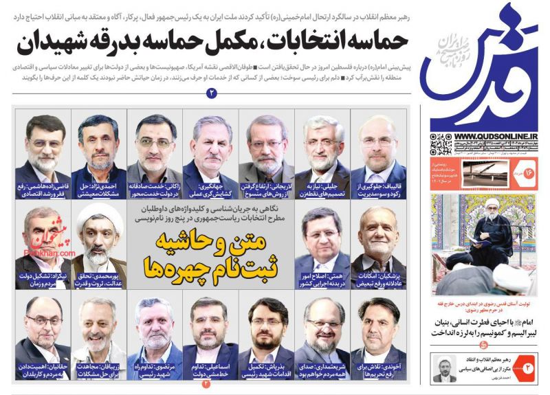 جمهوری اسلامی ، چهارشنبه ۱۶ خرداد