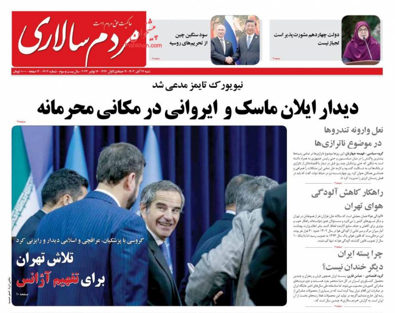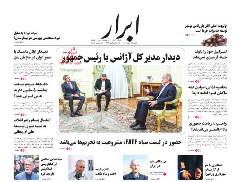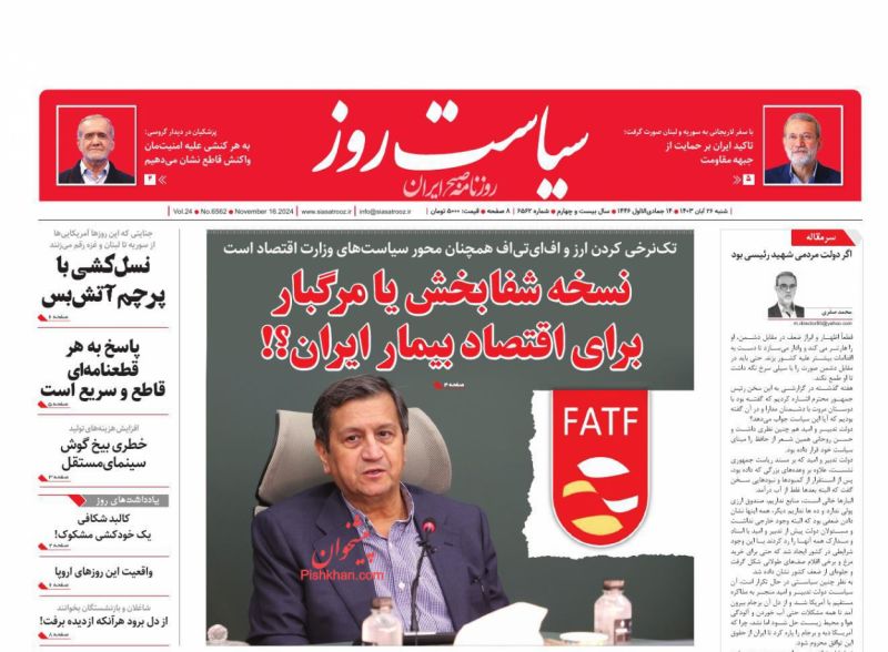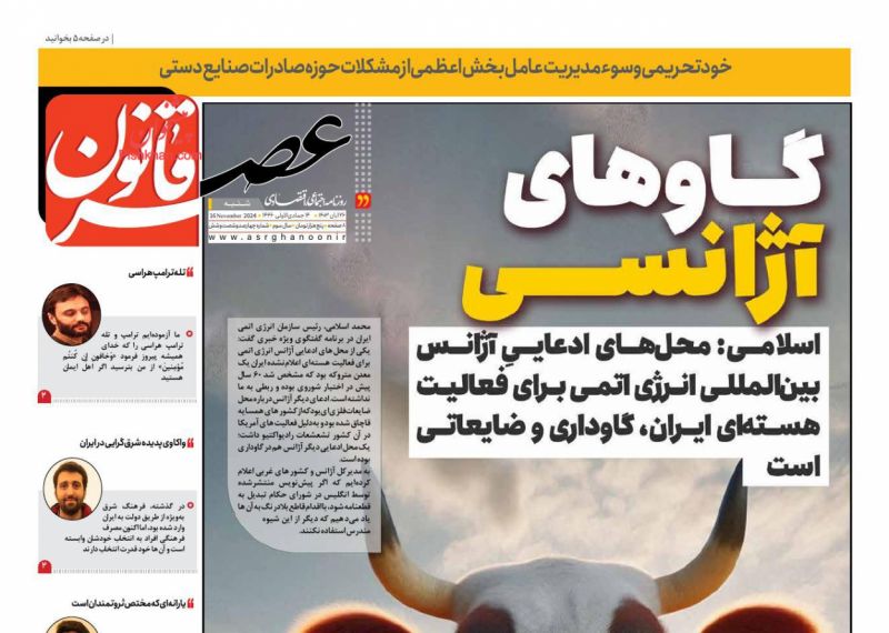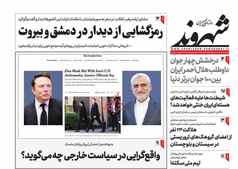 عصر ایرانیان ، پنجشنبه ۲۴ آبان