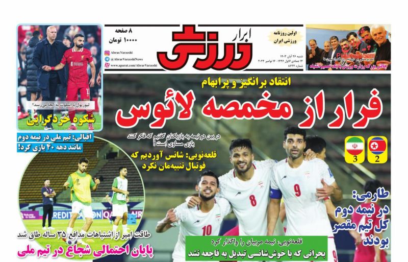 ابرار ورزشى ، شنبه ۲۶ آبان