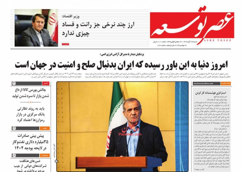 جهان اقتصاد ، پنجشنبه ۲۴ آبان