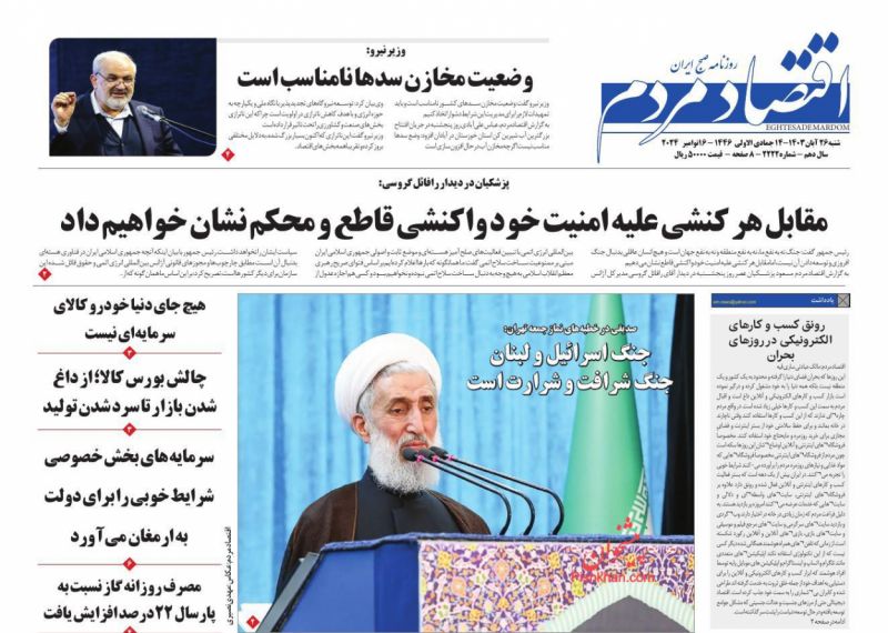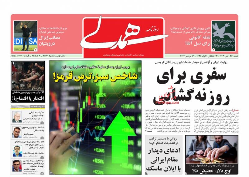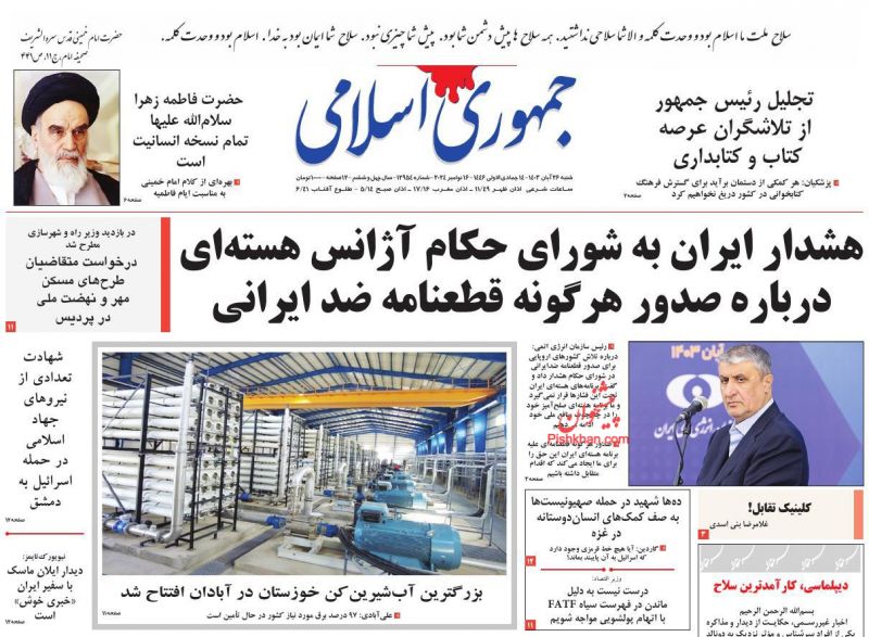 جمهوری اسلامی ، شنبه ۲۶ آبان