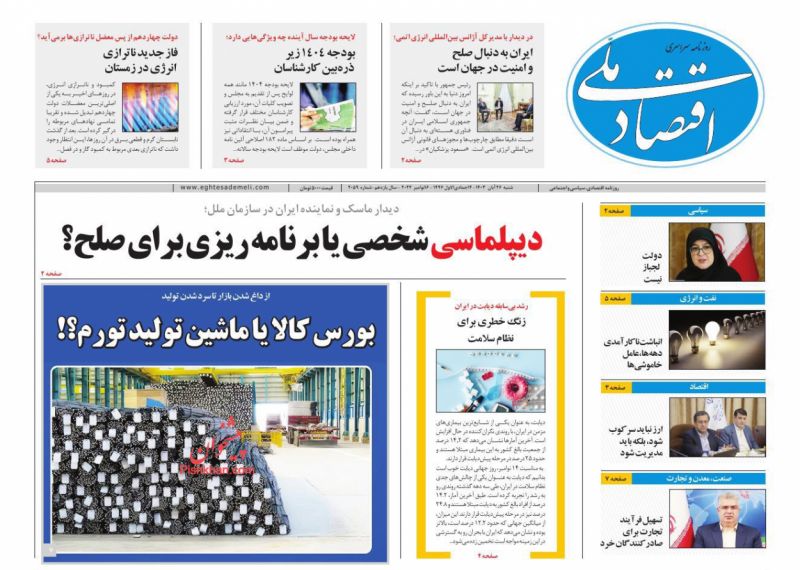 اقتصاد ملی ، شنبه ۲۶ آبان