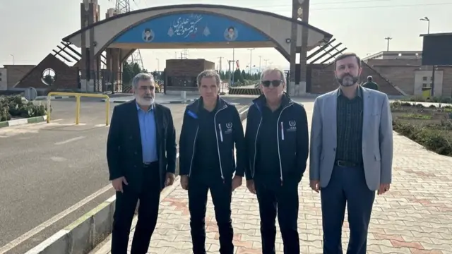 منبع تصویر،Reutersتوضیح تصویر،مدیرکل و معاون آژانس (وسط) همراه با دو مقام ایرانی در بازدید از مرکز غنیسازی فردو که ایران با تفسیر خاص خود تاسیس آن را به آژانس اطلاع نداده بود