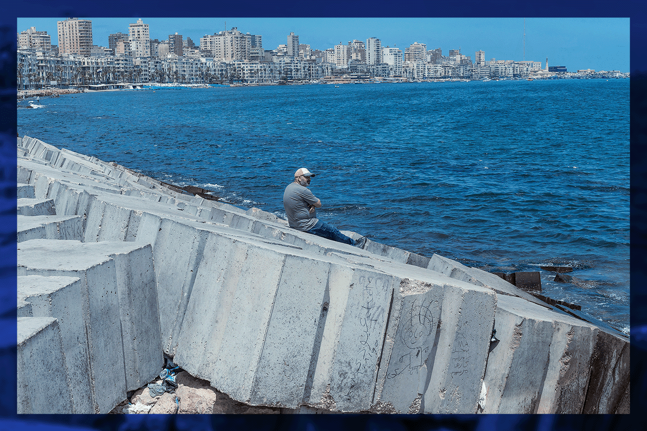 در اسکندریه موجشکنهای بتنی ساختهاند تا از شهر در برابر آب دریا محافظت کنند