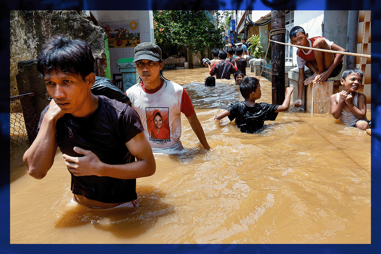 سیل در جاکارتا مناطق مسکونی و اداری شهر را به زیر آب فرو برده