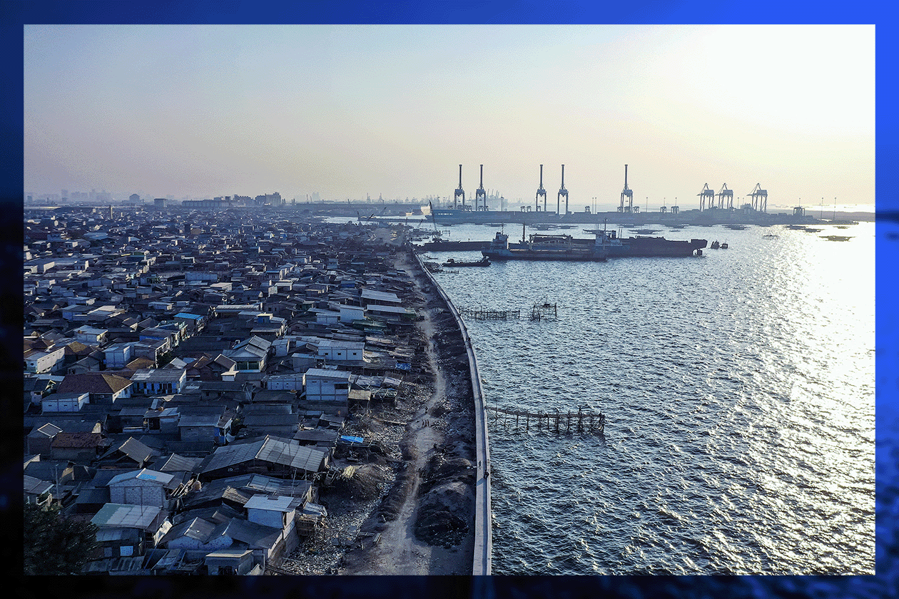 یک سد دریایی در شمال جاکارتا ساخته شده تا از ورود آب دریا به خانهها جلوگیری شود
