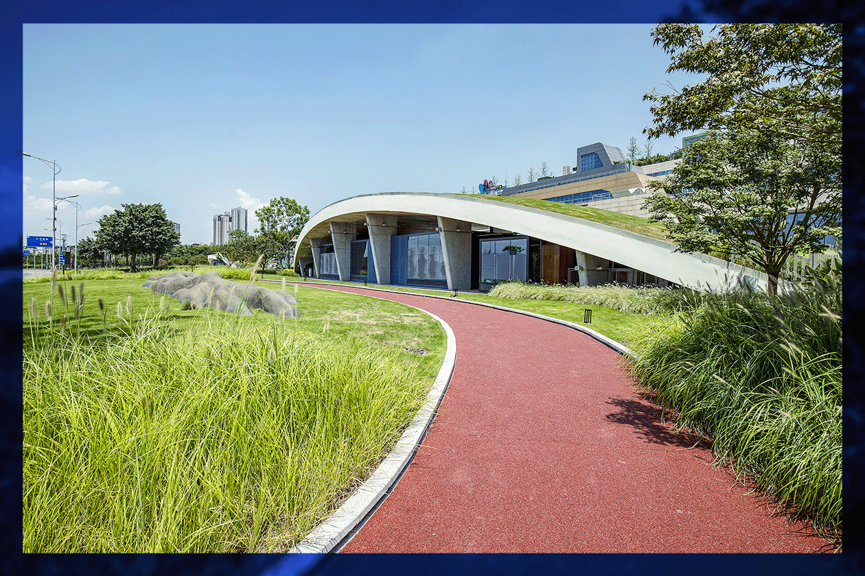 بام این ساختمان که در حاشیه شهر چونگچینگ قرار دارد طوری طراحی شده که آب را جذب و بارش شدید را کنترل کند