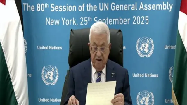 محمود عباس رهبر تشکیلات فلسطینی در حالی سخنرانی خود را از طریق ارتباط ویدیویی در سازمان ملل متحد آغاز کرده که از تمام گفتگوهای دیپلماتیک و رایزنیهای در نیویورک درباره فلسطین و غزه غایب بوده است. دلیل این غیبت، چیزی به جز تصمیم آمریکا برای محروم کردن او و دیگر اعضای تشکیلات خودگردان از روادید سفر به آمریکا نیست.