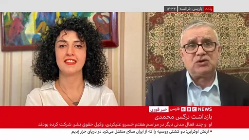 تقی رحمانی، تحلیلگر مسایل ایران و همسر خانم محمدی، در گفتوگو با بیبیسی فارسی ضمن تایید بازداشت «خشونتبار» خانم محمدی به همراه تعدادی دیگر گفت که برادر خانم محمدی هم در مسجد غدیر باباعلی، محل برگزاری مراسم هفتم حضور داشته و این صحنهها را دیده است.