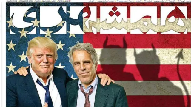 روزنامه همشهری نزدیک به علیرضا زاکانی، شهردار اصولگرای تهران، با انتشار طرحی از جفری اپستین، مجرم جنسی، در کنار دونالد ترامپ نوشته است که نام رئیسجمهور آمریکا «در صدر بزرگترین رسوایی تاریخ غرب است.»