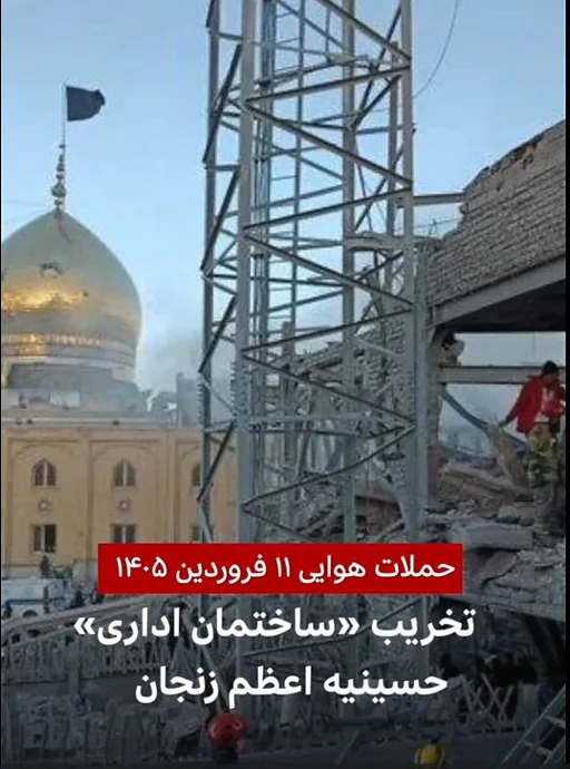 ببینید: تخریب «ساختمان اداری» حسینیه اعظم زنجان در حمله هوایی
